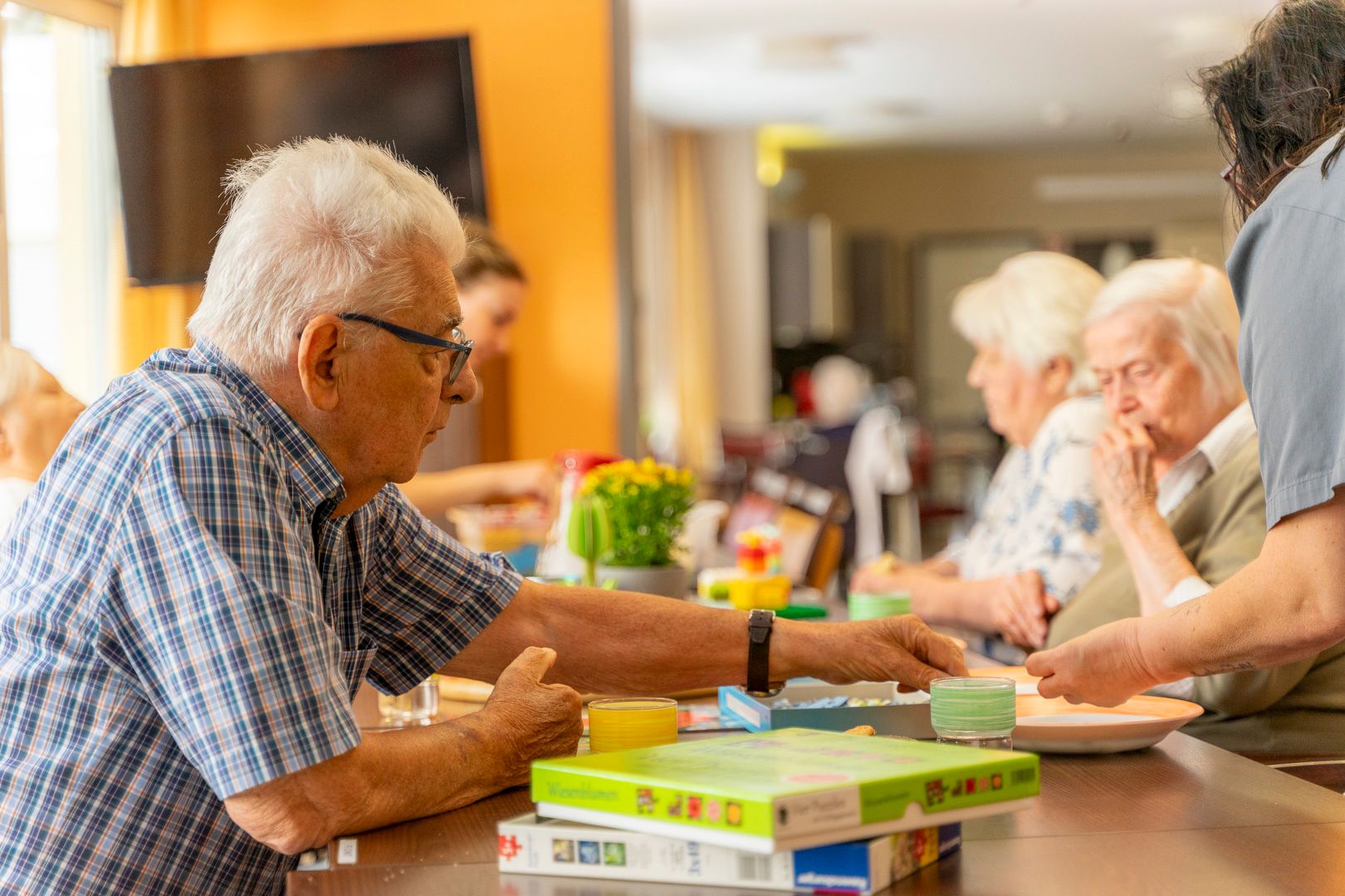 Um unseren Bewohnern eine gemeinschaftliche, gemütliche Umgebung bieten zu können, haben wir uns entschieden, das Hausgemeinschaftsprinzip in unserer Einrichtung umzusetzen. Gemeinschaft wird durch gemeinsame Wohnräume, Mahlzeiten und Aktivitäten gefördert und gelebt - Die Gestaltung des Alltags ist Beschäftigung und Therapie gleichermaßen.